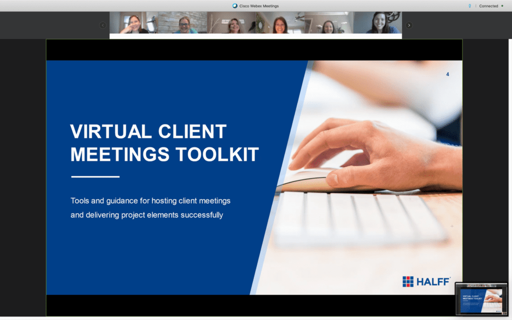 Webex accommodates on-screen presentations, while maintaining a personal connection with participants.